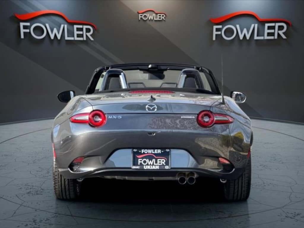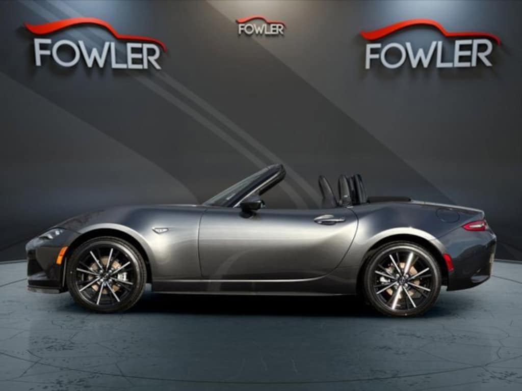 Machine Gray Metallic 2025 Mazda MX-5 Miata Grand Touring RWD 6-Speed Automatic 2.0L 4-Cylinder DOHC 16V 17 x 7 aluminum alloy wheels with black metallic finish, 4-Wheel Disc Brakes, 9 Speakers, ABS brakes, Air Conditioning, Alloy wheels, AM/FM radio: SiriusXM, AppLink/Apple CarPlay and Android Auto, Auto High-beam Headlights, Auto-dimming door mirrors, Auto-dimming Rear-View mirror, Automatic temperature control, bose audio system with audiopilot, Brake assist, Bumpers: body-color, cargo net, Convertible roof lining, Convertible roof wind blocker, Delay-off headlights, Driver vanity mirror, Dual front impact airbags, Dual front side impact airbags, Electronic Stability Control, Emergency communication system: MAZDA CONNECT, Exterior Parking Camera Rear, Four wheel independent suspension, Front anti-roll bar, Front Bucket Seats, Front Center Armrest, Fully automatic headlights, Garage door transmitter: HomeLink, Glass rear window, Heated door mirrors, heated front bucket seats, Heated front seats, Illuminated entry, Leather Shift Knob, leather upholstery, Low tire pressure warning, machine gray metallic paint charge, MAZDA CONNECT Infotainment system, Navigation System, Occupant sensing airbag, Outside temperature display, Panic alarm, Passenger vanity mirror, Power door mirrors, Power steering, Power windows, Radio data system, Rain sensing wipers, Rear anti-roll bar, Rear window defroster, Remote keyless entry, Speed control, Speed-sensing steering, Sport steering wheel, Steering wheel mounted audio controls, Tachometer, Telescoping steering wheel, Tilt steering wheel, Traction control, Trip computer, Variably intermittent wipers.