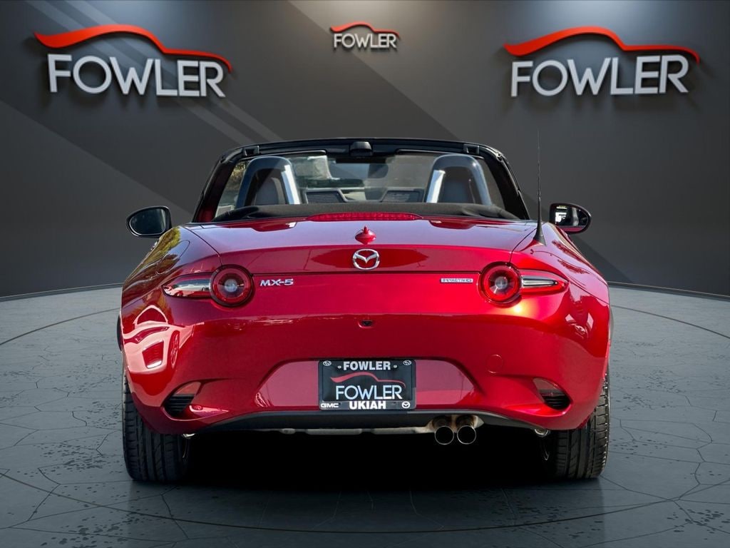 Soul Red Crystal Metallic 2025 Mazda MX-5 Miata Grand Touring RWD 6-Speed Manual 2.0L 4-Cylinder DOHC 16V 4-Wheel Disc Brakes, 9 Speakers, ABS brakes, Air Conditioning, Alloy wheels, AM/FM radio: SiriusXM, AppLink/Apple CarPlay and Android Auto, Auto High-beam Headlights, Auto-dimming door mirrors, Auto-dimming Rear-View mirror, Automatic temperature control, Brake assist, Bumpers: body-color, Convertible roof lining, Convertible roof wind blocker, Delay-off headlights, Driver vanity mirror, Dual front impact airbags, Dual front side impact airbags, Electronic Stability Control, Emergency communication system: MAZDA CONNECT, Exterior Parking Camera Rear, Four wheel independent suspension, Front anti-roll bar, Front Bucket Seats, Front Center Armrest, Fully automatic headlights, Garage door transmitter: HomeLink, Glass rear window, Heated door mirrors, Heated front seats, Illuminated entry, Leather Shift Knob, Low tire pressure warning, Navigation System, Occupant sensing airbag, Outside temperature display, Panic alarm, Passenger vanity mirror, Power door mirrors, Power steering, Power windows, Radio data system, Rain sensing wipers, Rear anti-roll bar, Rear window defroster, Remote keyless entry, Speed control, Speed-sensing steering, Sport steering wheel, Steering wheel mounted audio controls, Tachometer, Telescoping steering wheel, Tilt steering wheel, Traction control, Trip computer, Variably intermittent wipers.