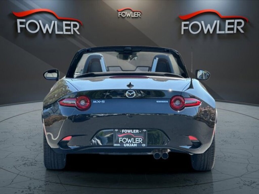 Jet Black Mica 2025 Mazda MX-5 Miata Grand Touring RWD 6-Speed Automatic 2.0L 4-Cylinder DOHC 16V 17 x 7 aluminum alloy wheels with black metallic finish, 4-Wheel Disc Brakes, 9 Speakers, ABS brakes, Air Conditioning, Alloy wheels, AM/FM radio: SiriusXM, AppLink/Apple CarPlay and Android Auto, Auto High-beam Headlights, Auto-dimming door mirrors, Auto-dimming Rear-View mirror, Automatic temperature control, bose audio system with audiopilot, Brake assist, Bumpers: body-color, Convertible roof lining, Convertible roof wind blocker, Delay-off headlights, Driver vanity mirror, Dual front impact airbags, Dual front side impact airbags, Electronic Stability Control, Emergency communication system: MAZDA CONNECT, Exterior Parking Camera Rear, Four wheel independent suspension, Front anti-roll bar, Front Bucket Seats, Front Center Armrest, Fully automatic headlights, Garage door transmitter: HomeLink, Glass rear window, Heated door mirrors, heated front bucket seats, Heated front seats, Illuminated entry, Leather Shift Knob, leather upholstery, Low tire pressure warning, MAZDA CONNECT Infotainment system, Navigation System, Occupant sensing airbag, Outside temperature display, Panic alarm, Passenger vanity mirror, Power door mirrors, Power steering, Power windows, Radio data system, Rain sensing wipers, Rear anti-roll bar, Rear window defroster, Remote keyless entry, Speed control, Speed-sensing steering, Sport steering wheel, Steering wheel mounted audio controls, Tachometer, Telescoping steering wheel, Tilt steering wheel, Traction control, Trip computer, Variably intermittent wipers, wheel locks.