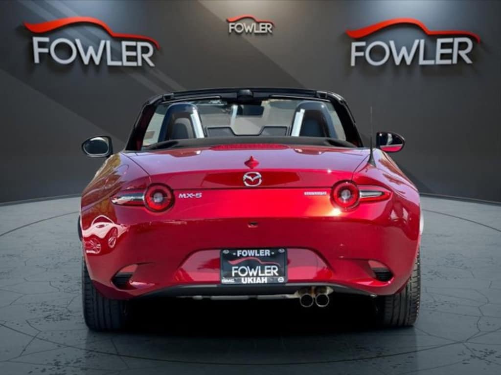 Soul Red Crystal Metallic 2025 Mazda MX-5 Miata Grand Touring RWD 6-Speed Manual 2.0L 4-Cylinder DOHC 16V 17 x 7 aluminum alloy wheels with black metallic finish, 4-Wheel Disc Brakes, 9 Speakers, ABS brakes, Air Conditioning, Alloy wheels, AM/FM radio: SiriusXM, AppLink/Apple CarPlay and Android Auto, Auto High-beam Headlights, Auto-dimming door mirrors, Auto-dimming Rear-View mirror, Automatic temperature control, bose audio system with audiopilot, Brake assist, Bumpers: body-color, Convertible roof lining, Convertible roof wind blocker, Delay-off headlights, Driver vanity mirror, Dual front impact airbags, Dual front side impact airbags, Electronic Stability Control, Emergency communication system: MAZDA CONNECT, Exterior Parking Camera Rear, Four wheel independent suspension, Front anti-roll bar, Front Bucket Seats, Front Center Armrest, Fully automatic headlights, Garage door transmitter: HomeLink, Glass rear window, Heated door mirrors, heated front bucket seats, Heated front seats, Illuminated entry, Leather Shift Knob, leather upholstery, Low tire pressure warning, MAZDA CONNECT Infotainment system, Navigation System, Occupant sensing airbag, Outside temperature display, Panic alarm, Passenger vanity mirror, Power door mirrors, Power steering, Power windows, Radio data system, Rain sensing wipers, Rear anti-roll bar, Rear window defroster, Remote keyless entry, soul red crystal paint charge, Speed control, Speed-sensing steering, Sport steering wheel, Steering wheel mounted audio controls, Tachometer, Telescoping steering wheel, Tilt steering wheel, Traction control, Trip computer, Variably intermittent wipers, weather package, wheel locks.