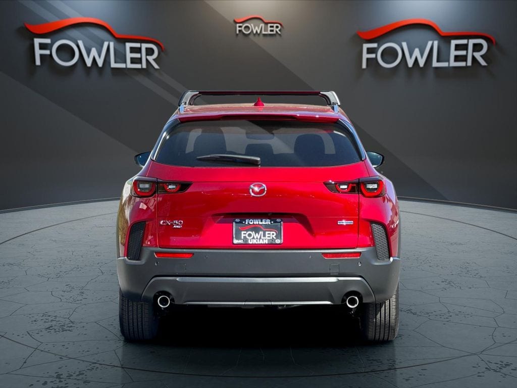 Soul Red Crystal Metallic 2026 Mazda CX-50 Hybrid Preferred AWD CVT 2.5L 4-Cylinder 2.5L 4-Cylinder, 4-Wheel Disc Brakes, 8 Speakers, ABS brakes, Air Conditioning, Alloy wheels, AM/FM radio, AppLink/Apple CarPlay and Android Auto, Auto High-beam Headlights, Automatic temperature control, Brake assist, Bumpers: body-color, Cargo Package, Delay-off headlights, Driver door bin, Driver vanity mirror, Dual front impact airbags, Dual front side impact airbags, Electronic Stability Control, Emergency communication system: MAZDA CONNECT, Exterior Parking Camera Rear, Front anti-roll bar, Front Bucket Seats, Front Center Armrest, Front dual zone A/C, Front reading lights, Front wheel independent suspension, Fully automatic headlights, Half Leatherette Seat Trim, Heated door mirrors, Heated Front Bucket Seats, Heated front seats, Illuminated entry, Knee airbag, Leather Shift Knob, Leather steering wheel, Low tire pressure warning, Occupant sensing airbag, Outside temperature display, Overhead airbag, Overhead console, Panic alarm, Passenger door bin, Passenger vanity mirror, Power door mirrors, Power driver seat, Power Liftgate, Power moonroof, Power steering, Power windows, Radio data system, Radio: AM/FM/HD 8-Speaker Audio Sound System, Rain sensing wipers, Rear seat center armrest, Rear window defroster, Rear window wiper, Remote keyless entry, Soul Red Crystal Metallic Paint Charge, Speed control, Speed-sensing steering, Split folding rear seat, Spoiler, Steering wheel mounted audio controls, Tachometer, Telescoping steering wheel, Tilt steering wheel, Traction control, Trip computer, Turn signal indicator mirrors, Variably intermittent wipers, Wheels: 17" x 7J Aluminum Alloy Black Metallic Finish, 2.5L 4-Cylinder.