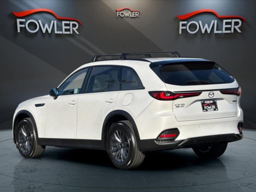 Rhodium White Premium 2026 Mazda CX-70 PHEV SC Plus AWD 8-Speed Automatic 2.5L I4 DOHC 16V LEV3-SULEV30 12 Speakers, 4-Wheel Disc Brakes, ABS brakes, Air Conditioning, Alloy wheels, AM/FM radio: SiriusXM, AppLink/Apple CarPlay and Android Auto, Auto High-beam Headlights, Auto-dimming door mirrors, Auto-dimming Rear-View mirror, Automatic temperature control, Black Cross Bars, Black Lug Nuts and Black Wheel Locks, Brake assist, Bumpers: body-color, Compass, Delay-off headlights, Driver door bin, Driver vanity mirror, Dual front impact airbags, Dual front side impact airbags, E911 Automatic Emergency Notification, Electronic Stability Control, Emergency communication system: MAZDA CONNECT, Exterior Parking Camera Rear, Four wheel independent suspension, Front anti-roll bar, Front Bucket Seats, Front Center Armrest w/Storage, Front dual zone A/C, Front reading lights, Fully automatic headlights, Garage door transmitter: HomeLink, Heads-Up Display, Heated door mirrors, Heated front seats, Heated rear seats, Heated steering wheel, Heated/Ventilated Front Bucket Seats, Illuminated entry, Infotainment System Voice Command, Knee airbag, Leather Seat Trim, Leather Shift Knob, Leather steering wheel, Low tire pressure warning, Mazda Connected Services, Memory seat, Navigation system: MAZDA CONNECT, Occupant sensing airbag, Outside temperature display, Overhead airbag, Overhead console, Panic alarm, Passenger door bin, Passenger vanity mirror, Power door mirrors, Power driver seat, Power Liftgate, Power passenger seat, Power steering, Power windows, Radio Broadcast Data System Program Information, Radio data system, Radio: AM/FM with 8 Speaker Sound System, Rain sensing wipers, Rear air conditioning, Rear anti-roll bar, Rear reading lights, Rear seat center armrest, Rear window defroster, Rear window wiper, Remote keyless entry, Rhodium White Premium Paint Charge, SMS Text Msg Audio Delivery and Reply, Speed control, Speed-sensing steering, Split folding rear seat, Spoiler, Steering wheel mounted audio controls, Tachometer, Telescoping steering wheel, Tilt steering wheel, Traction control, Trip computer, Turn signal indicator mirrors, Variably intermittent wipers, Ventilated front seats, Wheels: 19 x 8J Aluminum Alloy. Price includes: $2000 - Customer Cash. Exp. 03/02/2026