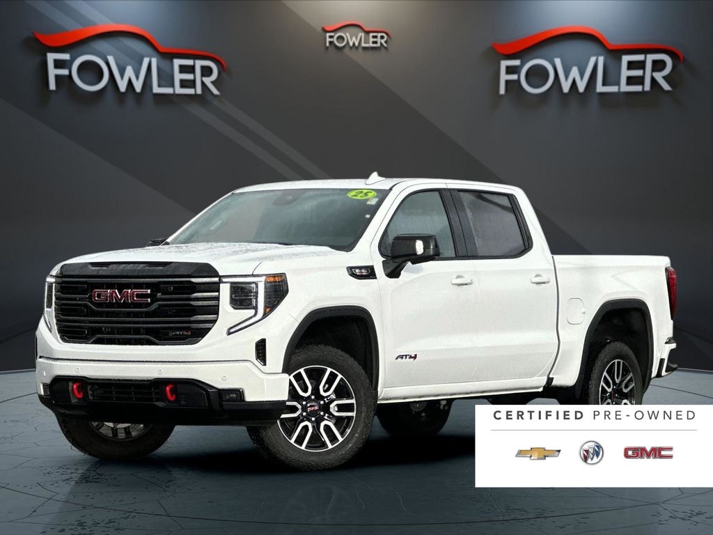 Certified. Summit White 2025 GMC Sierra 1500 AT4 4WD 10-Speed Automatic 3.0L I6 GMC Certified Pre-Owned Certified, 10-Speed Automatic, 4WD, Jet Black With Kalahari Accents Leather, 10-Way Power Driver Seat Adjuster w/Lumbar, 10-Way Power Passenger Seat Adjuster w/Lumbar, 120-Volt Bed Mounted Power Outlet, 120-Volt Interior Power Outlet, 2 Charge/Data USB Ports Inside Center Console, 2 Type-C Charge-Only Rear USB Ports, 2 USB Ports, 220 Amp Alternator, 3.23 Rear Axle Ratio, 4-Wheel Disc Brakes, 7 Speakers, ABS brakes, Air Conditioning, Alloy wheels, AM/FM radio: SiriusXM with 360L, Apple CarPlay/Android Auto, AT4 Preferred Package, Auto High-beam Headlights, Auto-dimming door mirrors, Auto-dimming Rear-View mirror, Auto-Locking Rear Differential, Automatic Emergency Braking, Automatic temperature control, Black Chrome Grille Insert Bars, Block heater, Brake assist, Buckle to Drive, Bumpers: body-color, Color-Keyed Carpeting Floor Covering, Compass, Deep-Tinted Glass, Delay-off headlights, Driver door bin, Driver Memory, Driver vanity mirror, Dual front impact airbags, Dual front side impact airbags, Electric Rear-Window Defogger, Electronic Stability Control, Emergency communication system: OnStar, Engine Block Heater, Floor-Mounted Center Console, Following Distance Indicator, Forward Collision Alert, Front anti-roll bar, Front Bucket Seats, Front Center Armrest, Front dual zone A/C, Front fog lights, Front License Plate Kit, Front Pedestrian Braking, Front Prem Floor Liners w/Removable Carpet Insert, Front Rain-Sensing Wipers, Front reading lights, Front wheel independent suspension, Fully automatic headlights, HD Surround Vision, Heated 2nd Row Outboard Seats, Heated door mirrors, Heated Driver & Front Outboard Passenger Seating, Heated front seats, Heated rear seats, Heated steering wheel, Heavy-Duty Air Filter, Hill Descent Control, Hitch Guidance, Hitch View, Illuminated entry, In-Vehicle Trailering System App, Integrated Trailer Brake Controller, IntelliBeam Automatic High Beam On/Off, Keyless Open & Start, Lane Keep Assist w/Lane Departure Warning, LED Cargo Area Lighting, Low tire pressure warning, Memory seat, Navigation System, Occupant sensing airbag, Off-Road Suspension, OnStar Services Capable, Outside temperature display, Overhead airbag, Overhead console, Panic alarm, Passenger door bin, Passenger vanity mirror, Perforated Front Leather Seat Trim, Perimeter Lighting, Power Door Locks, Power door mirrors, Power driver seat, Power Front Passenger Windows w/Express Up/Down, Power Front Windows w/Driver Express Up/Down, Power passenger seat, Power Rake & Telescoping Steering Column, Power Rear Windows w/Express Down, Power Sliding Rear Window w/Rear Defogger, Power steering, Power Sunroof, Power windows, Preferred Equipment Group 4SB, Premium Bose 7-Speaker Sound System, Push Button Start, Radio data system, Radio: Premium GMC Infotainment Audio System, Rain sensing wipers, Rear Cross Traffic Braking, Rear Pedestrian Detection, Rear Prem Floor Liners w/Removable Carpet Insert, Rear reading lights, Rear seat center armrest, Rear step bumper, Rear Wheelhouse Liners, Rear window defroster, Red Recovery Hooks, Remote keyless entry, Remote Vehicle Starter System, Safety Alert Seat, Security system, SiriusXM w/360L Trial Subscription, Speed control, Speed-sensing steering, Split folding rear seat, Spray-On Pickup Bedliner w/GMC Logo, Steering Wheel Audio Controls, Steering wheel mounted audio controls, Tachometer, Telescoping steering wheel, Theft Deterrent System (Unauthorized Entry), Tilt steering wheel, Traction control, Trailer Camera Provisions, Trailer Side Blind Zone Alert, Trailering Package, Trip computer, Ultrasonic Front & Rear Park Assist, Universal Home Remote, Variably intermittent wipers, Ventilated Driver & Front Passenger Seats, Ventilated front seats, Voltmeter, Wheels: 20" x 9" Machined Aluminum, Wi-Fi Hotspot Capable, Wireless Apple CarPlay/Wireless Android Auto, Wireless Charging, 10-Speed Automatic,