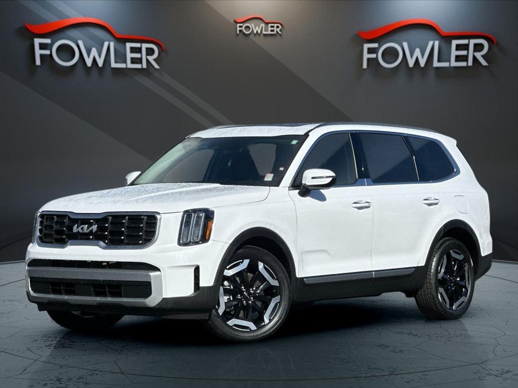 Glacial White Pearl 2023 Kia Telluride S AWD 8-Speed Automatic 3.8L V6 DGI DOHC Dual CVVT 3.648 Axle Ratio, 3rd row seats: split-bench, 4-Wheel Disc Brakes, 6 Speakers, ABS brakes, Air Conditioning, Alloy wheels, AM/FM radio: SiriusXM, Apple CarPlay & Android Auto, Auto High-beam Headlights, Automatic temperature control, Brake assist, Bumpers: body-color, Carpet Floor Mats, Delay-off headlights, Driver door bin, Driver vanity mirror, Dual front impact airbags, Dual front side impact airbags, Electronic Stability Control, Emergency communication system: 911 Connect, Exterior Parking Camera Rear, Four wheel independent suspension, Front anti-roll bar, Front Bucket Seats, Front Center Armrest, Front dual zone A/C, Front reading lights, Fully automatic headlights, Heated door mirrors, Heated Front Bucket Seats, Heated front seats, Illuminated entry, Knee airbag, Leather Shift Knob, Leather steering wheel, Low tire pressure warning, Navigation System, Occupant sensing airbag, Outside temperature display, Overhead airbag, Overhead console, Panic alarm, Passenger door bin, Passenger vanity mirror, Power door mirrors, Power driver seat, Power steering, Power Sunroof w/Sunshade, Power windows, Radio data system, Radio: AM/FM Display Audio System, Rear air conditioning, Rear anti-roll bar, Rear audio controls, Rear reading lights, Rear side impact airbag, Rear window defroster, Rear window wiper, Reclining 3rd row seat, Remote keyless entry, Roof rack: rails only, S Sunroof Package, Security system, Smart Key w/ Push Button and Remote Start, Speed control, Speed-sensing steering, Split folding rear seat, Spoiler, Steering wheel mounted audio controls, SynTex Synthetic Leather Seat Trim, Tachometer, Telescoping steering wheel, Tilt steering wheel, Traction control, Trip computer, Turn signal indicator mirrors, Variably intermittent wipers, Wheels: 20" x 7.5" Black Finish.