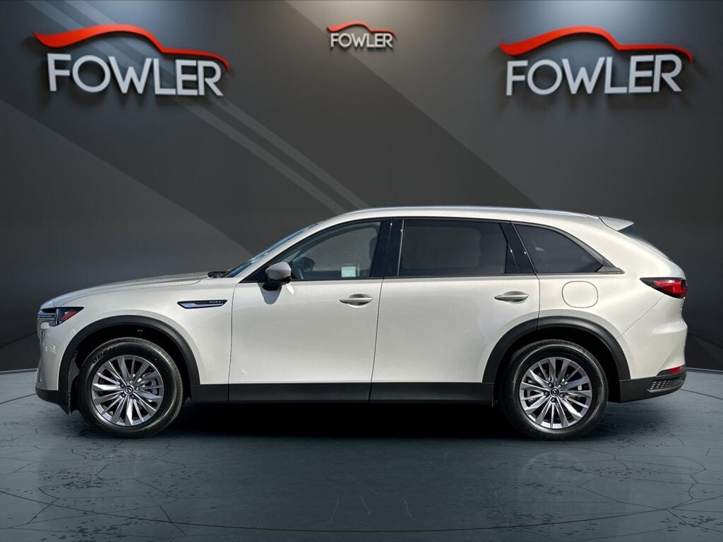 Certified. Platinum Quartz 2025 Mazda CX-90 PHEV Preferred AWD 8-Speed Automatic 2.5L 4-Cylinder Mazda Certified, 2.5L 4-Cylinder, 3rd row seats: bench, 4-Wheel Disc Brakes, 8 Speakers, ABS brakes, Air Conditioning, Alloy wheels, AM/FM radio, AppLink/Apple CarPlay and Android Auto, Auto High-beam Headlights, Automatic temperature control, Brake assist, Bumpers: body-color, Compass, Delay-off headlights, Driver door bin, Driver vanity mirror, Dual front impact airbags, Dual front side impact airbags, E911 Automatic Emergency Notification, Electronic Stability Control, Emergency communication system: MAZDA CONNECT, Exterior Parking Camera Rear, Four wheel independent suspension, Front anti-roll bar, Front Bucket Seats, Front Center Armrest w/Storage, Front dual zone A/C, Front reading lights, Fully automatic headlights, Heated door mirrors, Heated Front Bucket Seats, Heated front seats, Illuminated entry, Infotainment System Voice Command, Knee airbag, Leather Seat Trim, Leather Shift Knob, Leather steering wheel, Low tire pressure warning, Mazda Connected Services, Occupant sensing airbag, Outside temperature display, Overhead airbag, Overhead console, Pandora Internet Radio Integration, Panic alarm, Passenger door bin, Passenger vanity mirror, Power door mirrors, Power driver seat, Power Liftgate, Power moonroof, Power passenger seat, Power steering, Power windows, Radio Broadcast Data System Program Information, Radio data system, Radio: AM/FM w/HD/8-Speaker Sound System, Rain sensing wipers, Rear air conditioning, Rear anti-roll bar, Rear reading lights, Rear seat center armrest, Rear window defroster, Rear window wiper, Remote keyless entry, SMS Text Msg Audio Delivery & Reply, Speed control, Speed-sensing steering, Split folding rear seat, Spoiler, Steering wheel mounted audio controls, Tachometer, Telescoping steering wheel, Tilt steering wheel, Traction control, Trip computer, Turn signal indicator mirrors, Variably intermittent wipers, Wheels: 19" x 8.5J Aluminum Alloy, 2.5L 4-Cylinder.